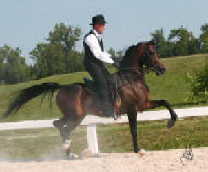 In 2008 our saddlebred mare produced a beautiful chestnut filly by him. All of his offspring have been sold. (See past sales page)